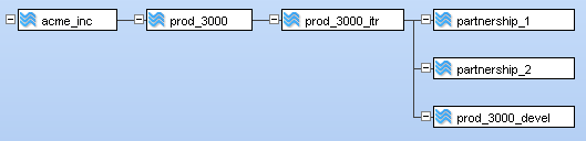 Both examples make use of the same environment: Assume that your company ("Acme Agile, Inc.") has a new product ("Product3000"), and you will be collaborating with two partners to develop the code ("Partnership_1" and "Partnership_2"). For simplicity, these examples illustrate settings ACLs for specific users. In a real-life scenario, you would typically assign many users to various groups, and then set the element ACLs by group.
