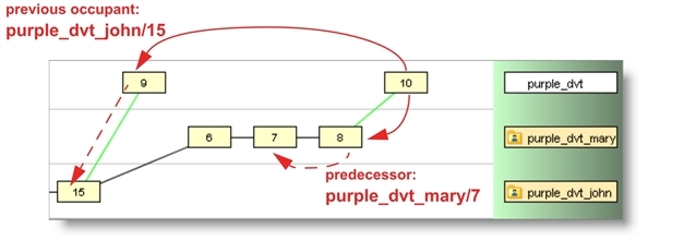 For a virtual version in a dynamic stream or snapshot, the previous-occupant result may or may not be the same as the predecessor result.