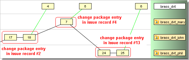 At this point, issue record #13 is active in stream brass_dvt. Promoting that issue record (using promote -Fx -l) promotes version brass_dvt/6 (real version: brass_dvt_phil/25).