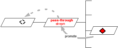 AccuRev features a special kind of stream, called a pass-through stream. A version that is promoted to such a stream automatically passes through to the parent stream. The file doesn’t become active in the pass-through stream; it does become active in the parent of the pass-through stream.