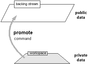 Workspaces provide an isolated, private development environment. The changes you make become public only when you enter a promote command. This creates versions of one or more elements in the parent stream. These versions are public: your changes are now visible to the entire sub-tree of streams under the parent stream. Subsequent promotions to higher-level streams will make the changes available to a larger sub-tree of streams and workspaces.