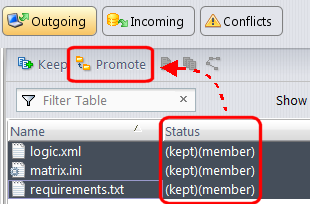 Tip: You can Promote files that you have not yet kept. AccuRev performs the necessary Keep action for you. In the case of new files, AccuRev first adds the file to the AccuRev repository.