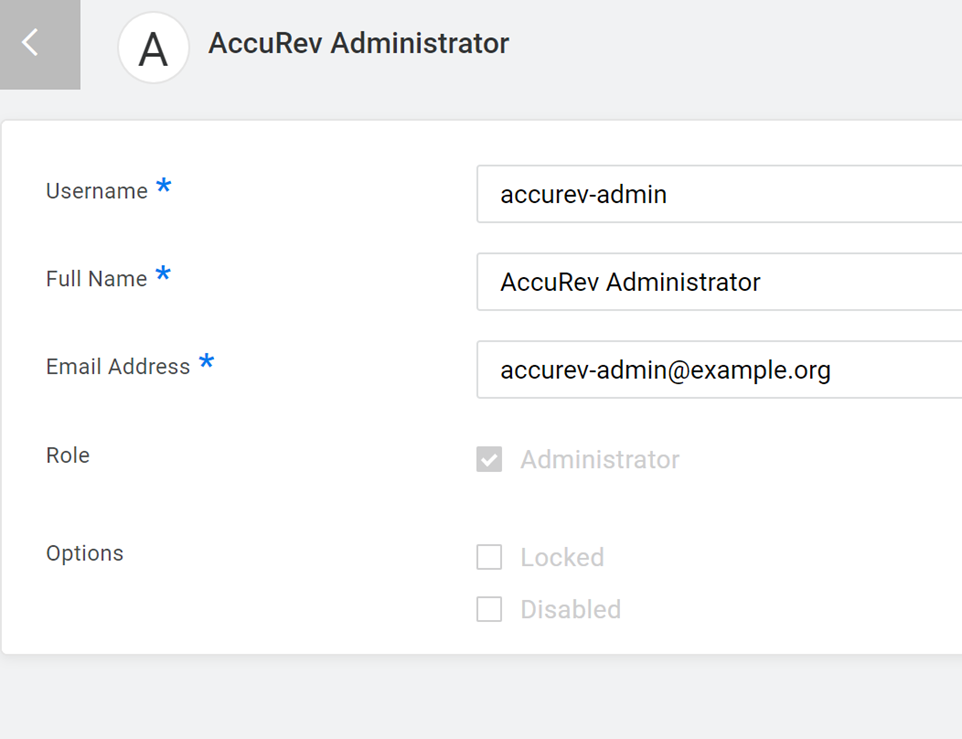 Once other administrators are configured, you can "retire" the accurev-admin user, if desired, by having another PulseUno administrator edit the accurev-admin user in PulseUno and check the Disabled checkbox.
