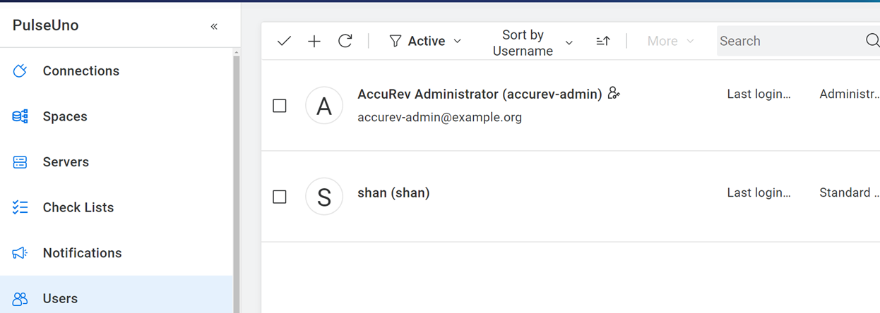 The AccuRev installation process creates a single Administrator user named "accurev-admin" in PulseUno. PulseUno users are authenticated against AccuRev, so you must create the "accurev-admin" user in AccuRev also.