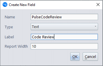 The field must be named "PulseCodeReview", and it must be of type "Text". The display name can be anything that is appropriate.