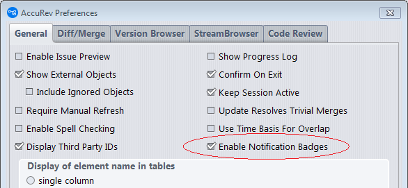 The views that a user has open in the GUI can become out-of-date as other AccuRev users execute operations. In 7.1, the GUI uses the server-generated stream notifications to display “notification badges,” which give the user a hint that activity has occurred in the stream(s) they are viewing.