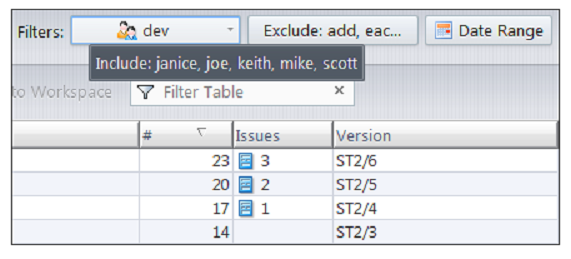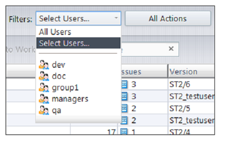 AccuRev 7.1 offers enhanced filtering capabilities in the History Browser to enable you to hone in on the transaction information that is of interest to you. In previous releases of AccuRev, the History Browser’s table of transactions could be filtered to display only the transactions performed by a specific user. AccuRev 7.1 expands upon that, providing filtering by users, groups, and actions.
