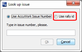 For example, when you bring up the Look Up Issue dialog, if third-party ITS keys are enabled AccuRev displays radio buttons that let you indicate that you want AccuRev to use the third-party key rather than the AccuWork issue number when looking up the issue.