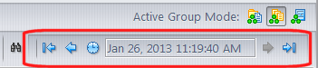 If the Enable StreamBrowser History preference is checked (AccuRev Preferences (Tools > Preferences Command)), a set of history controls are added to the toolbar. This enables you to view the stream hierarchy as it existed at any point in the past.