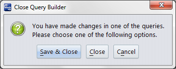 (Context menu only) Remove the currently selected query. The deletion does not take effect until you run Save all queries. If you close the Queries tab without saving your queries, the "deleted" query will still exist the next time you open the Queries tab. This may or may not be the right thing to do: closing the Queries tab without saving also discards changes you've made to other queries since the most recent save. |