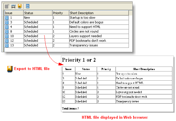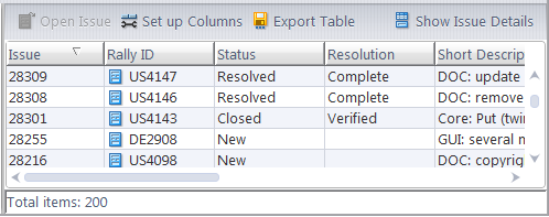 Each row of the table displays one issue record; each column displays a particular issue-record field.