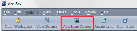 Choose the Issues > View Issue Queries option from the GUI main menu, or click the View Issue Queries button in the GUI main toolbar.