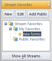 The new Stream Favorite appears in the Stream Favorites panel under the My Favorites folder.