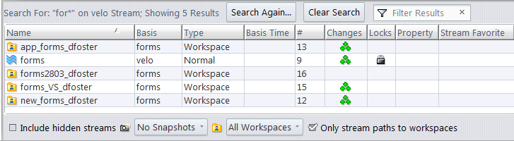 Note that if you right-click, your search will be limited only to the streams under the stream where you right-clicked. Otherwise, ALL streams in the depot matching your search will be found.