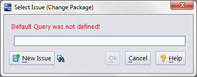 - Choose an issue record associated with another user. To do so, choose a user or group name from the drop-down list to the right of the Issue # field. The set of names shown here is defined when the change-package configuration is set (see Change Packages Tab).
