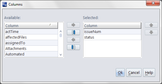 The fields listed under Selected when you click Ok will be displayed in the appropriate table of issue records.