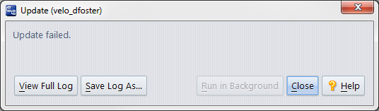 Sometimes AccuRev is not able to complete an Update operation, typically because a file cannot be overwritten due to permissions, or because it is open in another application. In this case, you will see an "Update Failed" warning. Use the View Log File button on this dialog to display the details of the failure, which should allow you to troubleshoot and correct the issue.