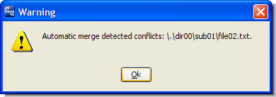 Unless you have set the Update Resolves Trivial Merges user preference, AccuRev displays a warning message like this: