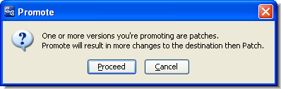 But promoting would propagate more changes to the destination stream than were loaded into the Change Palette. AccuRev issues a warning if you invoke Promote on this version.