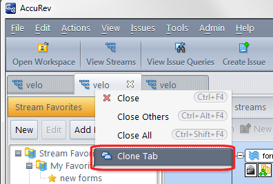 You can have any number of StreamBrowser tabs open at the same time, each for a different depot. You can also open multiple StreamBrowser tabs on the same depot, by invoking the Clone Tab command on the context menu of the tab control.