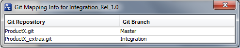 Clicking the GitServer icon displays information about any Git branches and their repositories that are mapped to this stream via GitServer.