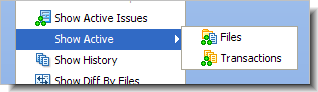 The way the three commands appear on a stream's context menu varies with the development-activity mode: the command for the current mode appears at the top-level of the context menu; the commands for the other two modes are in a submenu. For example, the following illustration shows how the menu choices appear if the StreamBrowser is currently displaying activity by issue record.