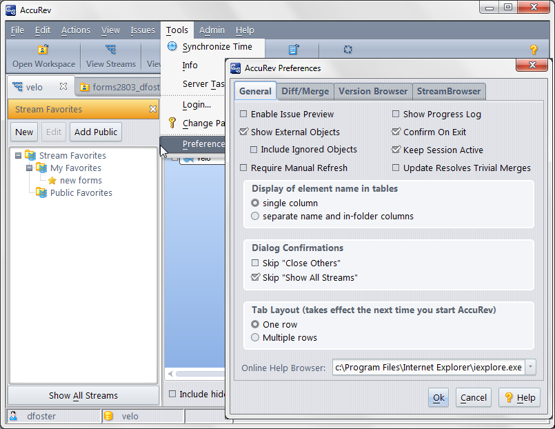Note: If you are upgrading from AccuRev 4.9 and are having difficulty getting the Help to work, particularly on a 64-bit Windows system, check to see if you have an old browser preference set. If so, clear out this setting and let AccuRev use its default value to get going.