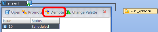 In the StreamBrowser, select the issue(s) you want to demote. You can either click the Demote button: