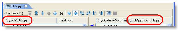 The two versions being compared can have different pathnames: the element may have been renamed or moved to another directory within the depot. (This may have occurred in one of the versions, or in both of them.) The Diff tool does not highlight or announce such namespace differences.