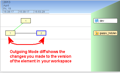 The Outgoing Changes mode displays changes to the current workspace or stream.