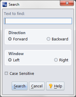 (Keyboard shortcut: Ctrl+F) Search for a text string, in either of the versions being compared. A dialog appears, in which you define the search.