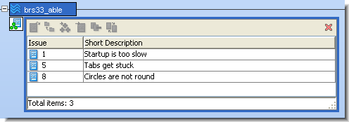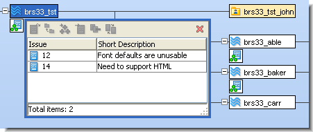 (This display is the same as the results of Show Active Issues or Stream Diff by Issues. In this note, all the examples use the Stream Browser’s development activity subwindow, but you can perform promote-by-issue operations in these other contexts, also.)