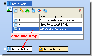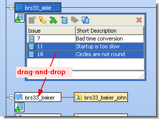 - Drag-and-dropping the issue record(s) onto another stream or workspace in the Stream Browser display. The destination can be the parent (backing) stream, another dynamic stream, or one of your workspaces. This invokes a Promote or Send to Workspace operation on all the elements in the selected issue record(s).