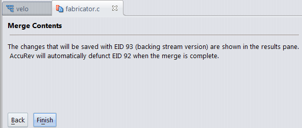 AccuRev resolves the element’s (twin) status as you specified in the wizard.