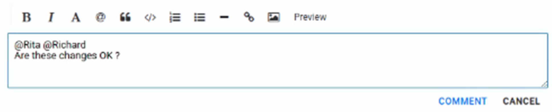 - Optionally format your comment. To display how your comment will look click Preview. To continue editing click Edit.