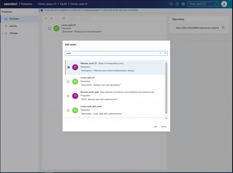 As an administrator or space owner, you can create and configure local, remote, and virtual vaults.