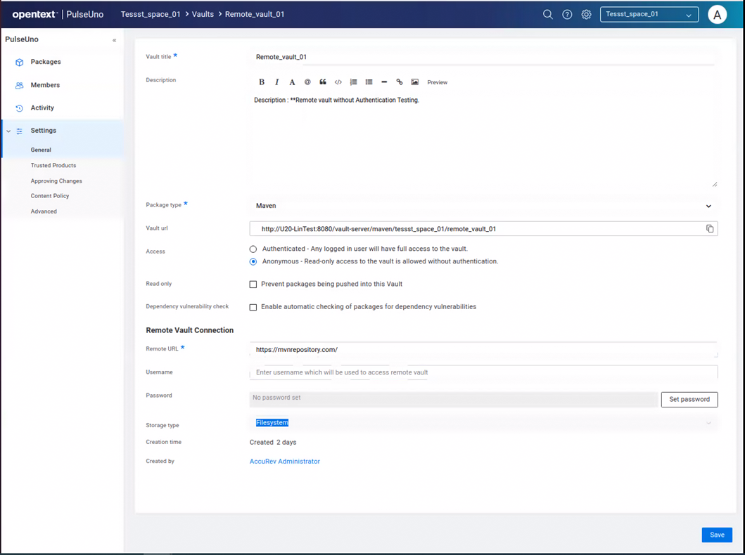 Read only Select this option to lock the vault, preventing packages being pushed to the vault.