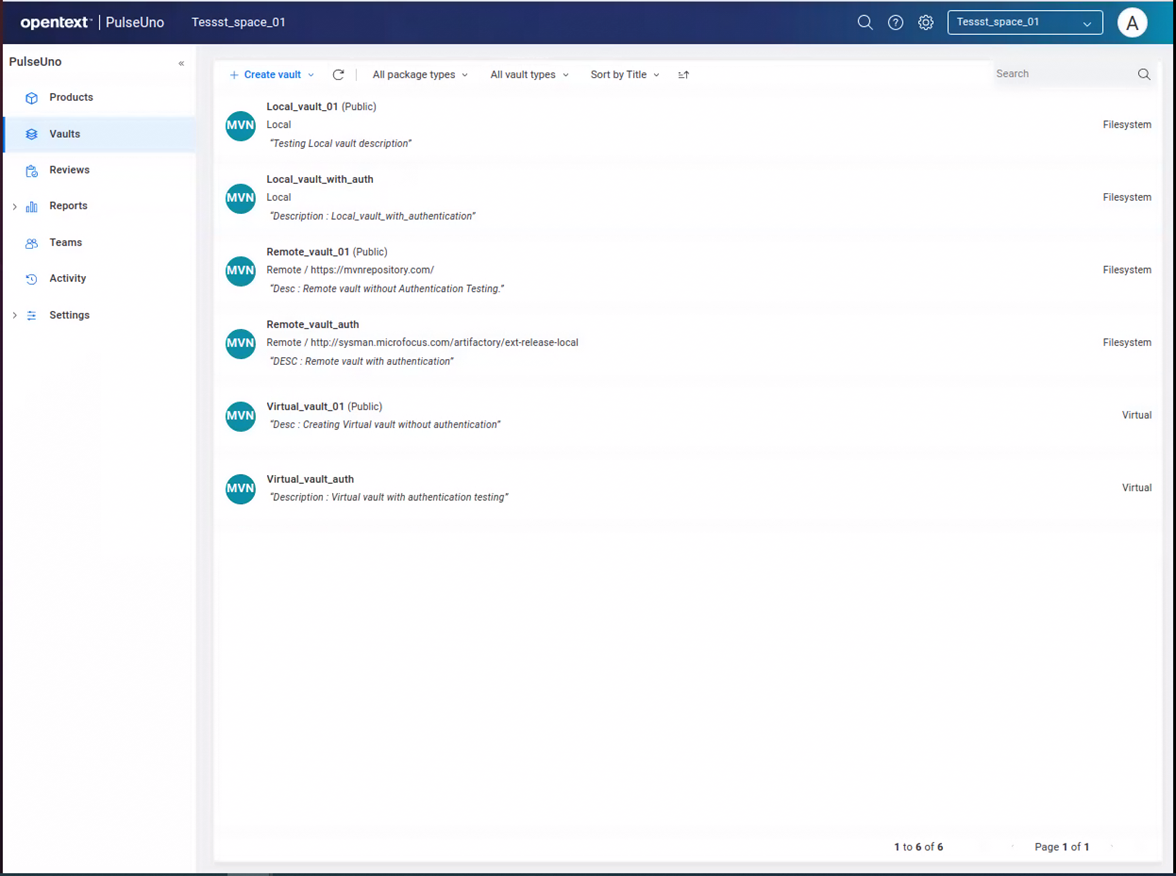 - Filter vaults by package type or vault type, and sort them by creation date or title.