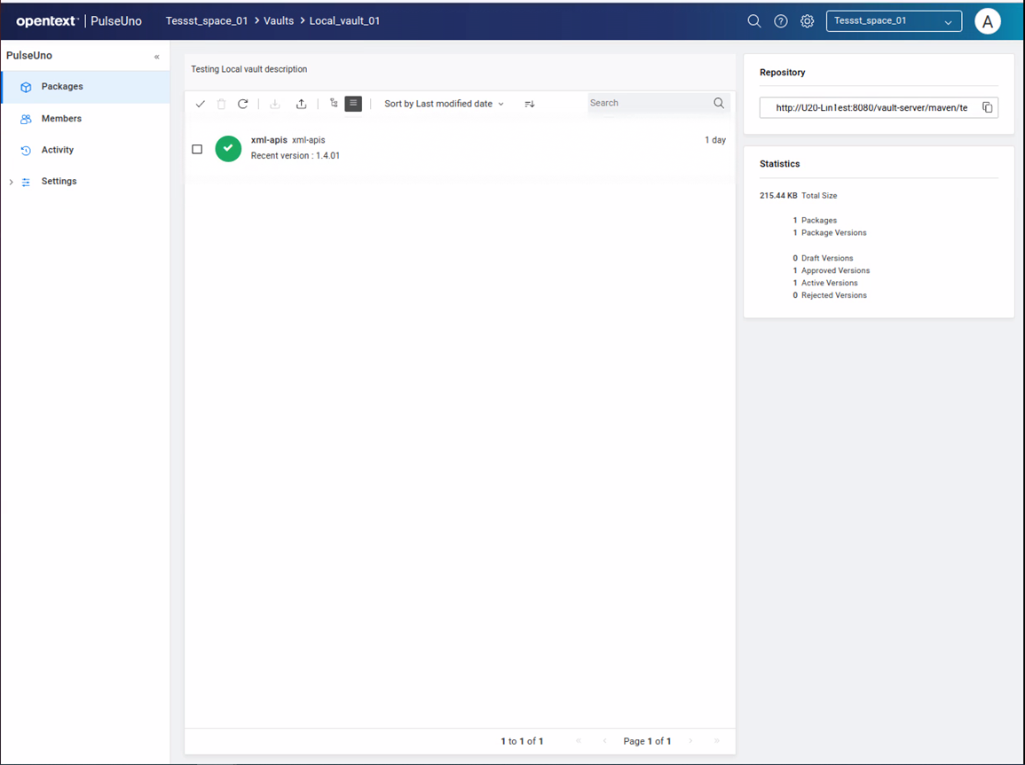 - To view a vault's packages and details, click the vault's name. The vault details opens, where the vault's URL and statistics are displayed on the right.