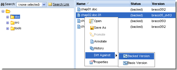 - Select Diff Against Other from the context menu. The cursor changes to a cross when it is over version listings.