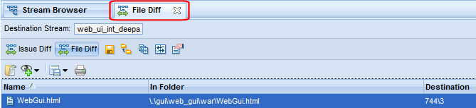 If you choose Diff Against Basis (by Files), the File Diff tab appears. This tab shows the source and destination streams for the comparison, and a list of files which differ between the two streams.