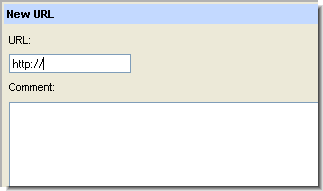 Defines a new attachment to be the address (URL) of an Internet resource. A New URL dialog box appears, in which you specify a URL and, optionally, a comment string. AccuWork automatically inserts http:// in the URL field. You can replace this with another Internet protocol if necessary.