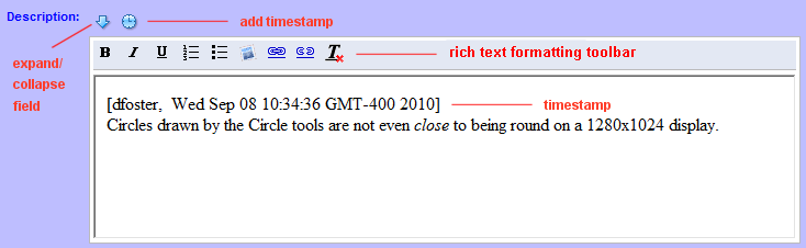 ). Clicking this button adds a timestamp to the top of the field. The timestamp format is AccuRev username, day, date, time, time zone, and year, as shown in the following example: