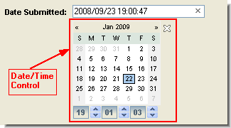 Click a day or adjust the time to put the date and time in the field. To close the control, use the click-to-close icon (