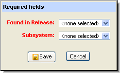 If you attempt to save the issue record when one or more required fields lack a value, AccuRev displays a dialog box containing a list of the required fields. You must specify a value for all required fields before you can save the issue record.