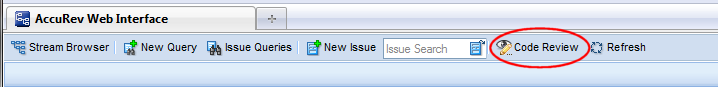 If your AccuRev system administrator has configured AccuRev as a Crucible plug-in, the Code Review button (