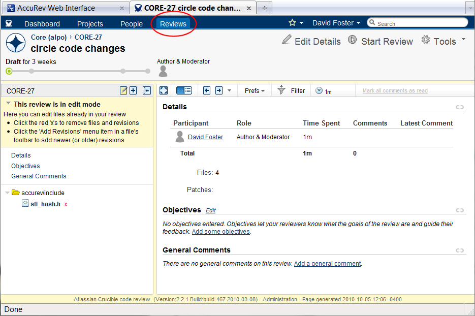- If you are already logged in to Crucible, the Edit Review Details page appears. Go to Step 8.