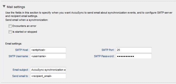 If you want, you can configure AccuSync to email AccuSync Configuration status and error reports to users you specify. See Email Notification for AccuSync Events for more information.