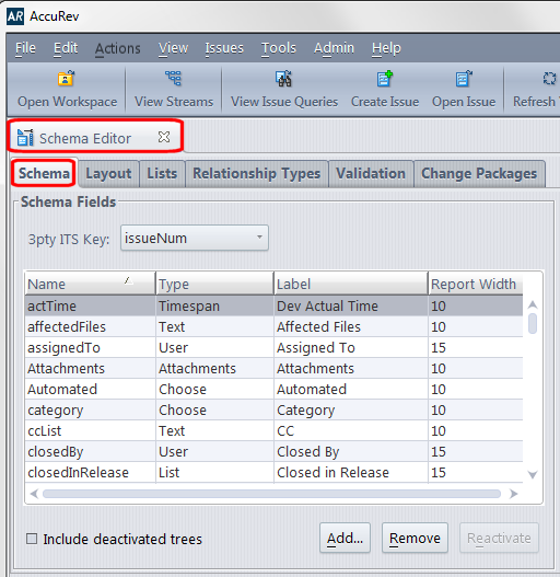 Refer to your AccuRev user documentation for more information on using the AccuWork Schema Editor.