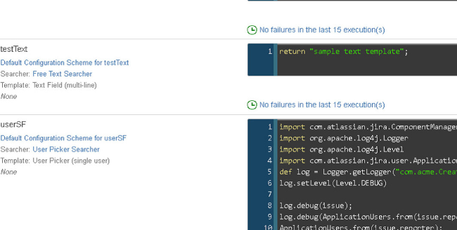 AccuWork Field Type JIRA Field Type Synchronization Type ScriptedFields Text ScriptedField1 Scripted field(Text Field multilne)) One Way (JIRA Master) ScriptedFields Text ScriptedField2 Scripted field(Date Time Picker)) One Way (JIRA Master) ScriptedFields Text ScriptedField3 Scripted field(Number multilne)) One Way (JIRA Master) ScriptedFields Text ScriptedField4 Scripted field(Single User Picker)) One Way (JIRA Master) ScriptedFields Text ScriptedField5 Scripted field(Multi User Picker)) One Way (JIRA Master) -
